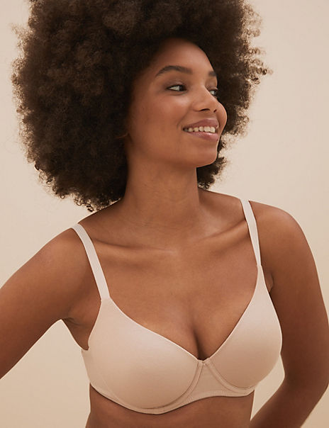 These cotton-rich t-shirt bras are padded for a smooth outline beneath form-fitting clothes. The full cups are underwired for a comfortably supportive fit. Handy three-pack contains a mix of colours. All of the cotton for our clothing is sustainably sourced and always will be.